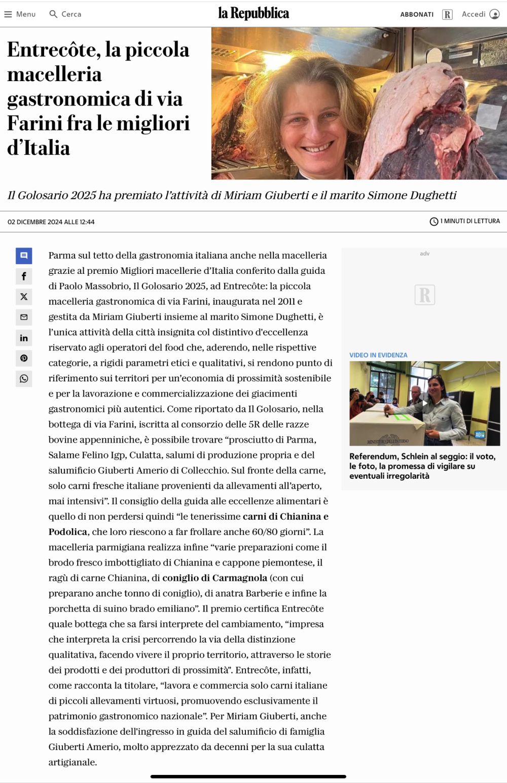 Premiazione delle migliori macellerie d'Italia con Paolo Massobrio
